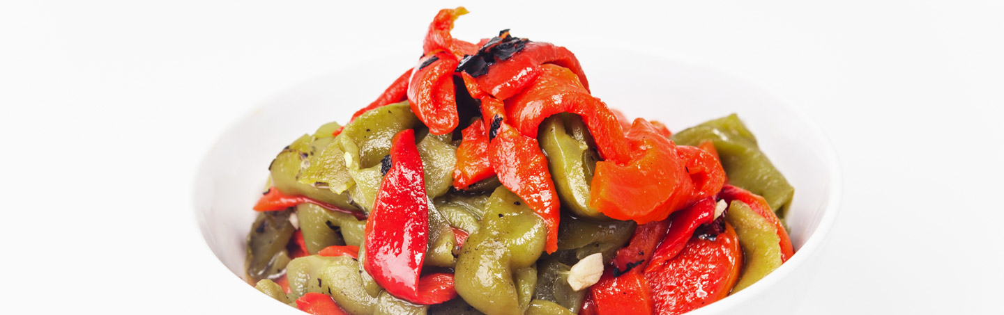 E nenhuma mesa de verão está completa sem pimentos assados, pimentos verdes e vermelhos grelhados e depois regados com azeite e vinagre. É o acompanhamento estrela das sardinhas assadas durante os meses quentes, mas são igualmente deliciosos sozinhos ou para dar um toque mais interessante a uma salada mista, que é a salada mais comum e simples em Portugal, feita com alface, tomate e cebola.